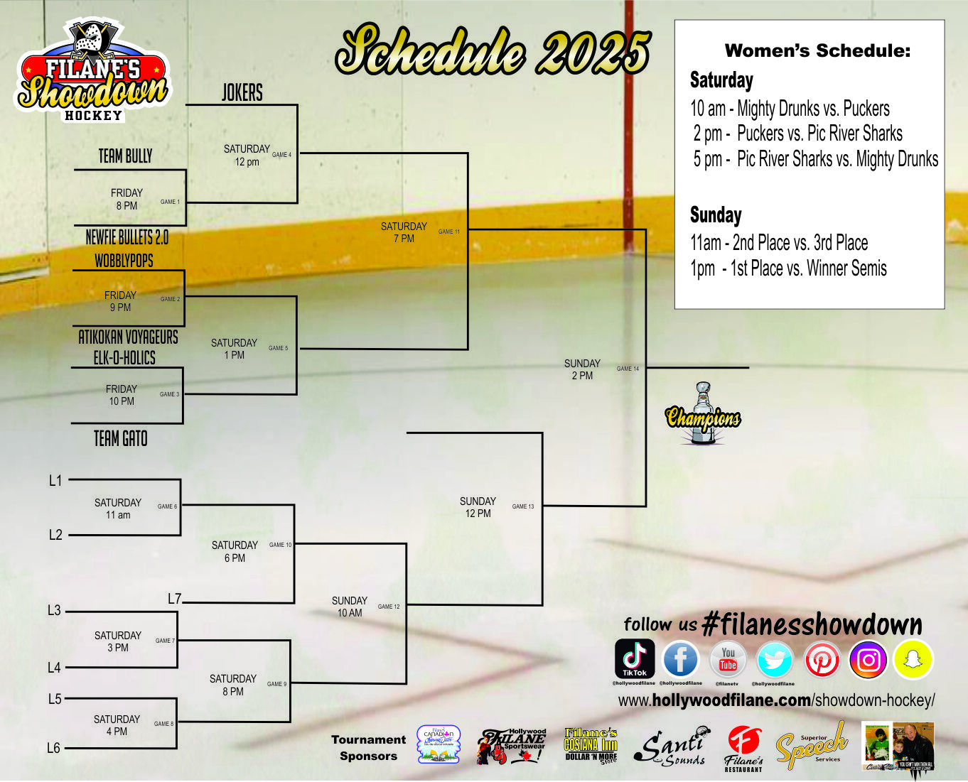 Fallen Rock Minor Hockey Association is proud to host the Annual Filane's Showdown Adult Hockey Tournament at the Schreiber Arena December 12 - 14, 2025!